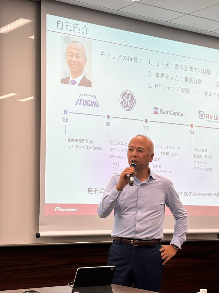 今回は、パイオニア株式会社の代表取締役 兼 社長執行役員であられる矢原史朗氏をお迎えし、複数企業での経営経験を通じて培われたリーダーシップ論や、意思決定の裏側、そして経営者を志すサーチャーへの期待と激励のメッセージをお話しいただきました。矢原氏の率直かつ示唆に富む言葉に、参加者一人ひとりが深く引き込まれていました。
